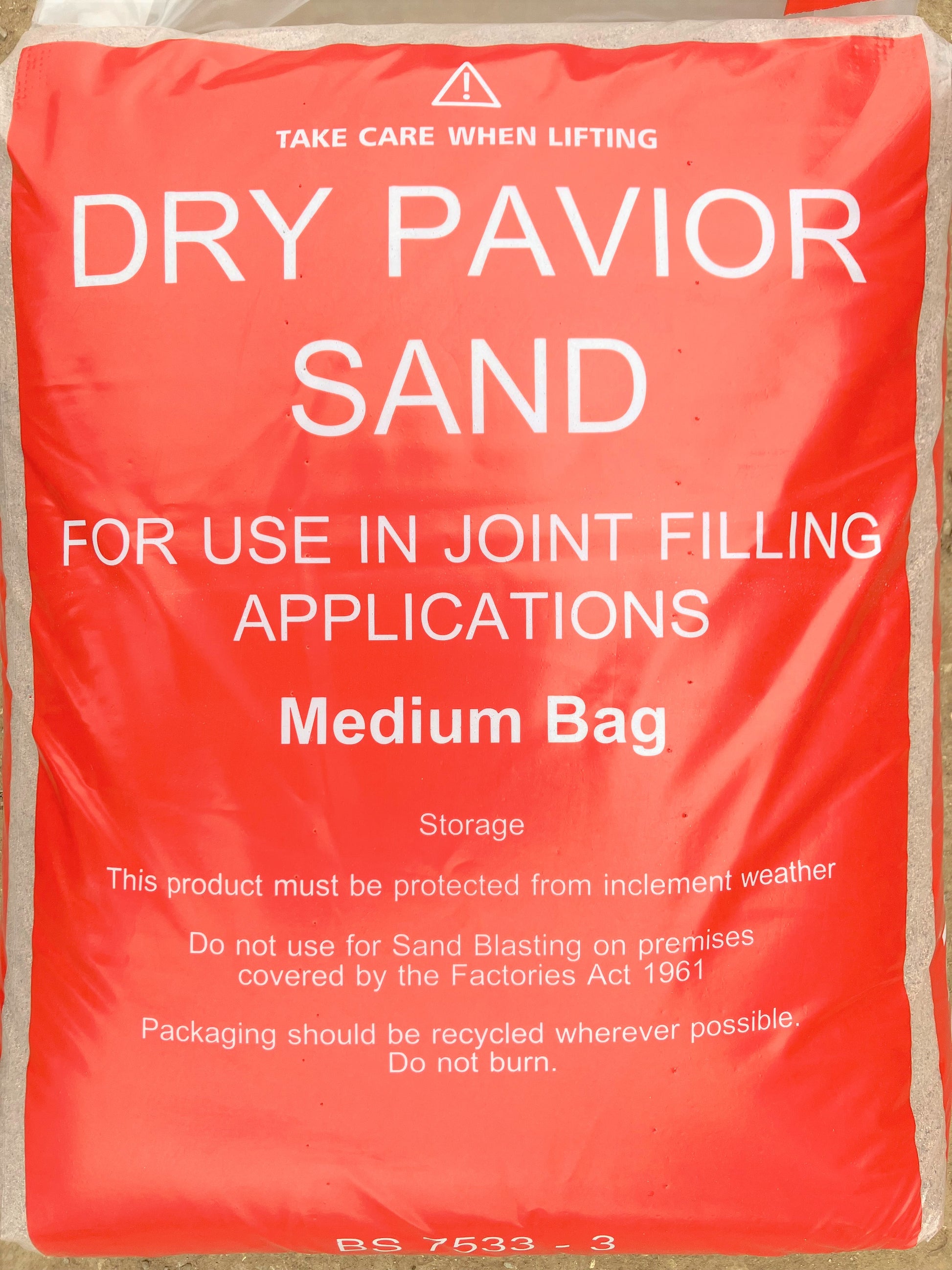 Kiln Dried Sand Also known as jointing Sand, ideal for brushing in-between joints of all types of block paving, and slabs where wet joints not required. 1 x 25kg bag covers approx. 7-9 square metres based on 50/60mm paving. Medium grade (250um).