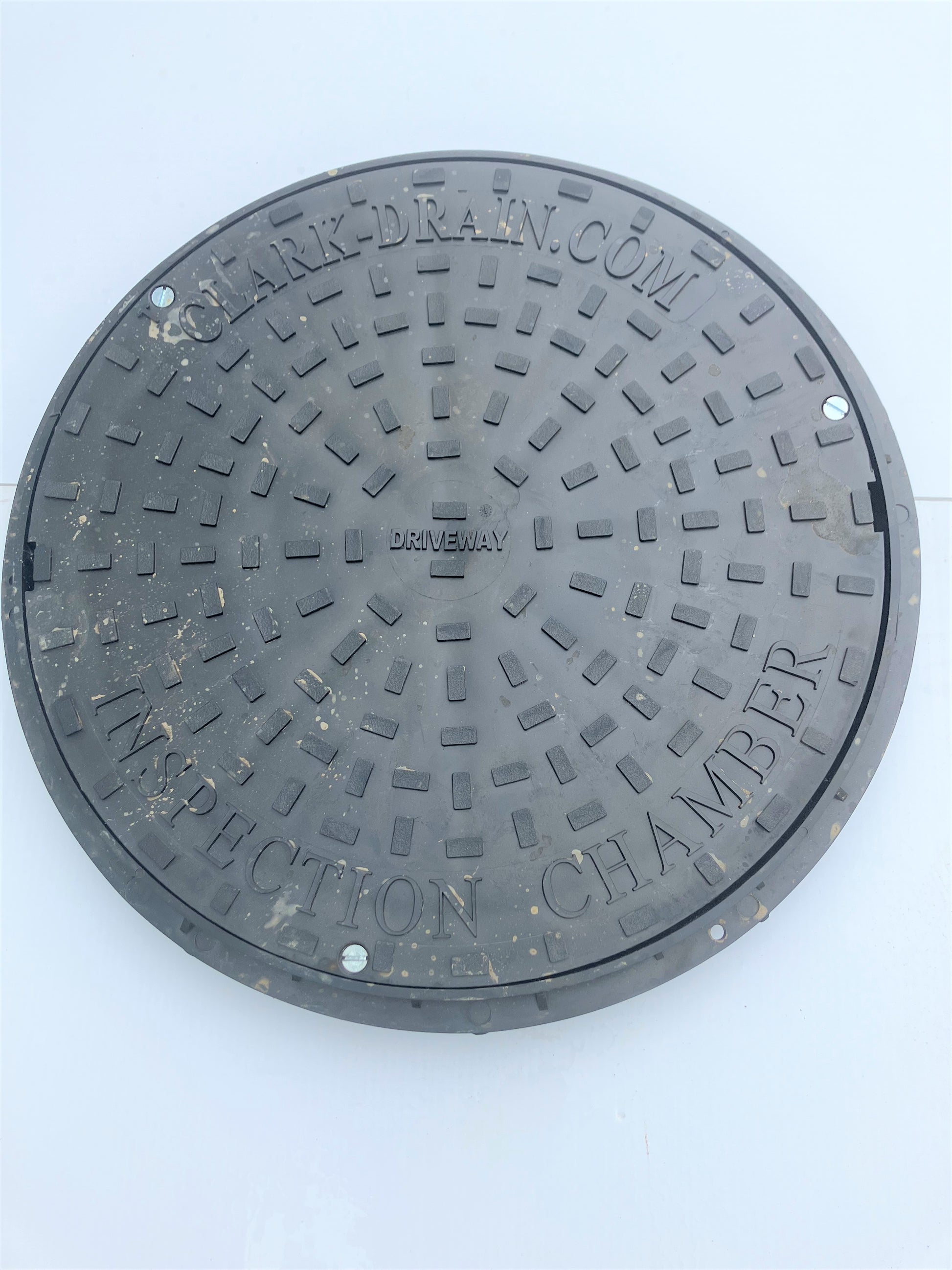 Large manhole cover 450mm. Round manhole cover, pushes neatly into our large manhole riser with rubber seal. 3 x screws fixes the lid into the 'frame' underneath, all included. Suitable for pedestrian use only.