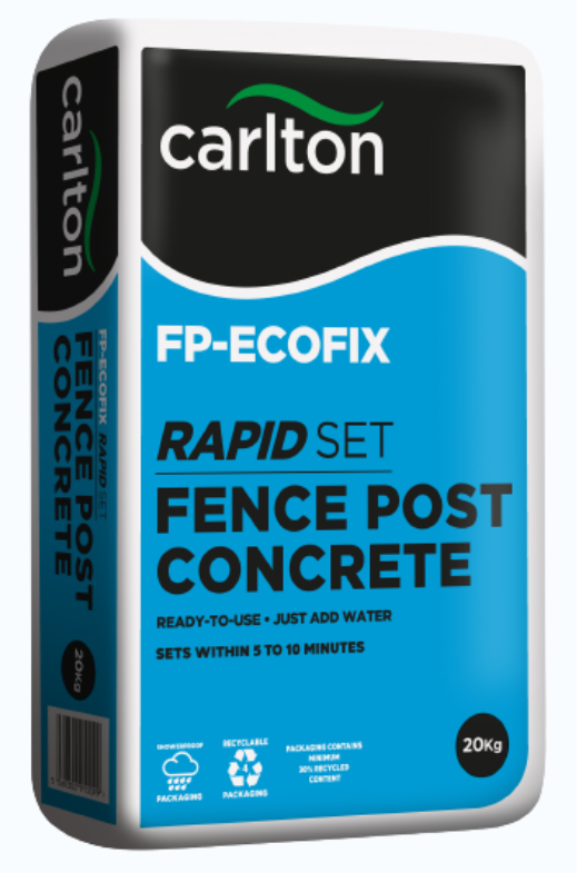 Premium Carlton Postmix Rapid Set. 20kg. In tough plastic, waterproof packaging, ideal for fencing etc. No mixing required, just add water! Suitable for wood, metal and concrete posts. This premium postmix is made from extra fine aggregate, meaning that you can finish with it smoothly on top, for instance amongst paving.