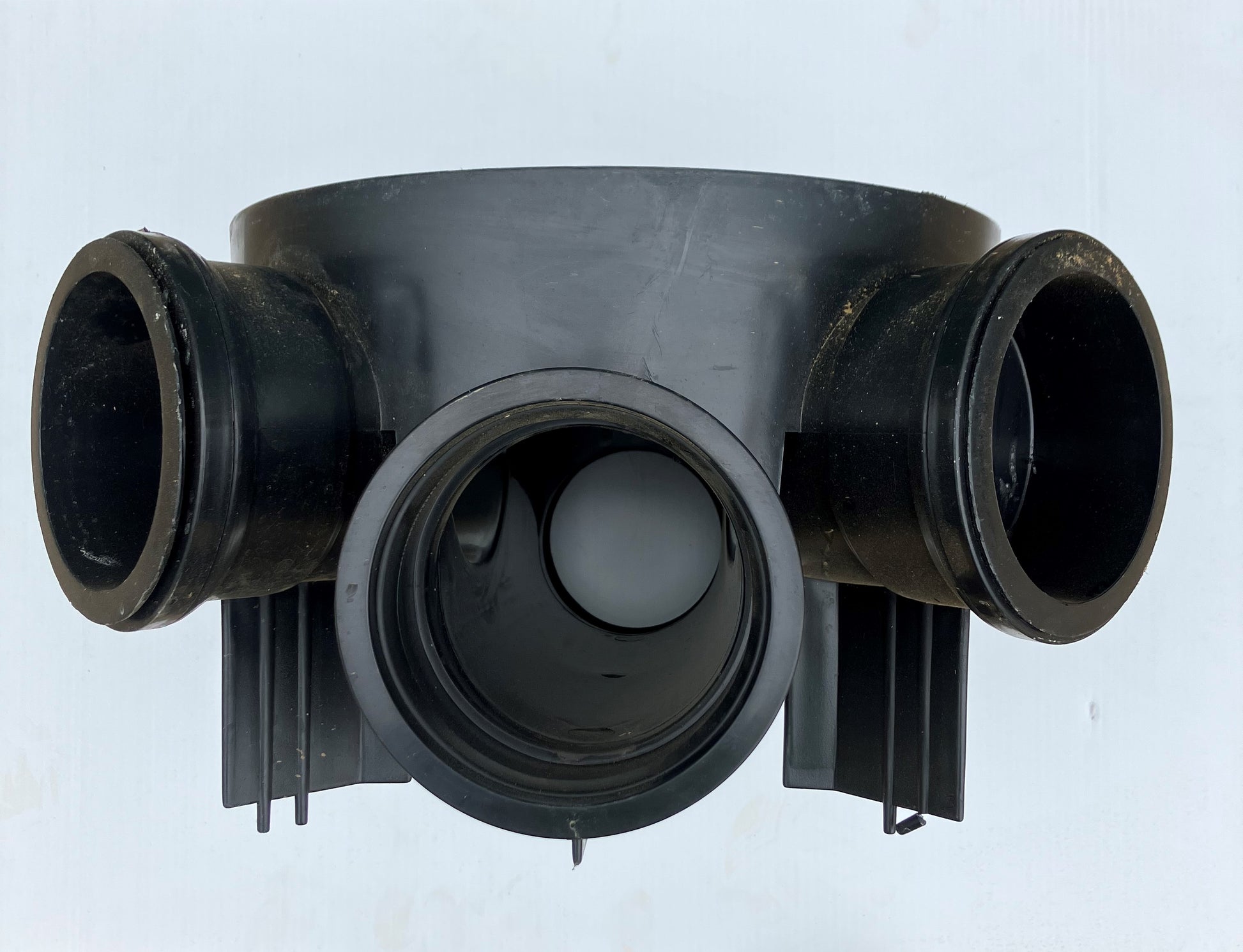 Small manhole base 330mm. Comes with 2 inlets, one on either side at 45 degrees to main channel, both with blanking plugs fitted.