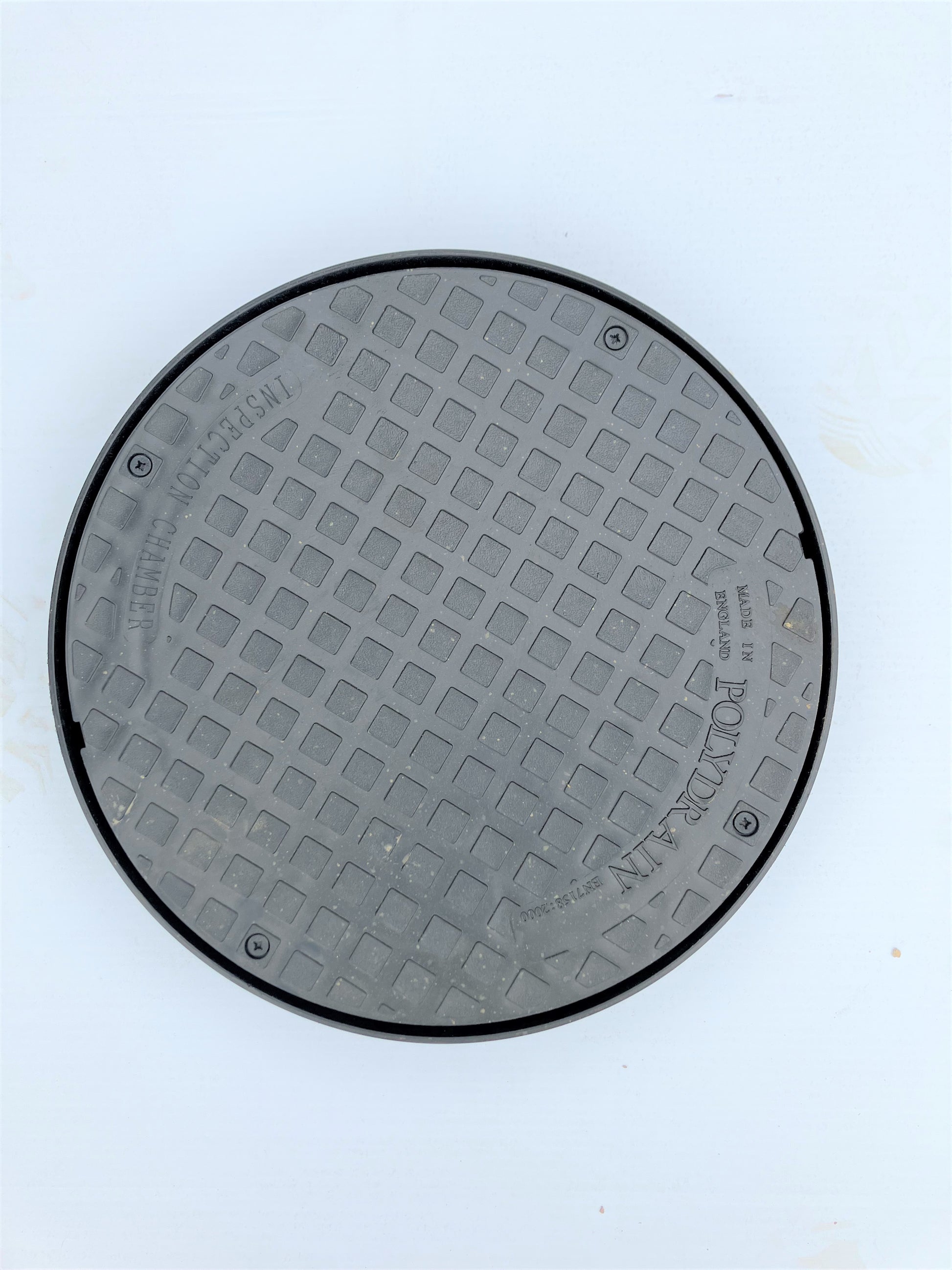 Small manhole cover 330mm. Round manhole cover, pushes neatly into our small manhole riser with rubber seal. 3 x screws fixes the lid into the 'frame' underneath, all included. Suitable for pedestrian use only.